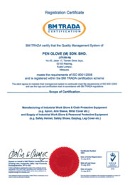 Striving for excellence is an on-going process for Pen Glove (M) Sdn Bhd. In order to supply reliable and cost-efficient products to meet the expectation of today’s market, Pen Glove (M) Sdn Bhd has been pursuing continuous improvement programs and investing in quality control activities and in research and development.. Pen Glove (M) Sdn Bhd was awarded ISO 9001-2000 in 2007. As with any company that foresees continued growth, Pen Glove (M) Sdn Bhd has high hope for the future.